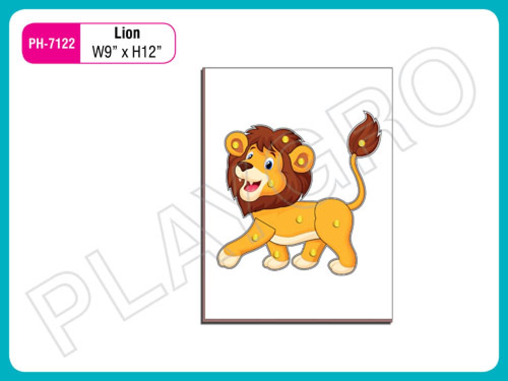 Lion wooden puzzle is made up of non-toxic paint and wooden construction. It includes 10 piece of puzzle and knobs are attached on each piece so that child can easily pick the piece and put back, and base image design makes it easy for kids to match it quickly by the picture and put the piece on the right place. Made in Faridabad this puzzle is designed in Lion shape with animal original body color. It is good for image recognition & hand-eye coordination and fine motor-skills. Attractive educational tool for pre-schools and home use. Recommended for 3+ years of age and is availbale at nominal prices in Faridabad, India.