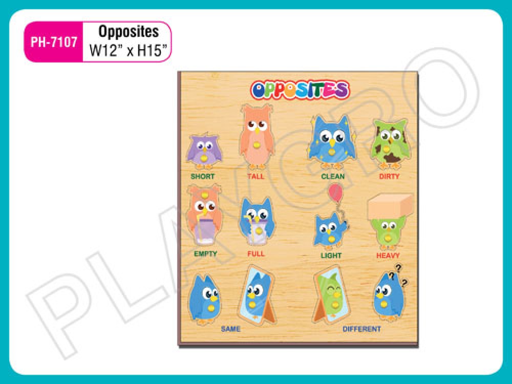 Opposite’s wooden board is made of non-toxic paints and wooden construction with smooth edges. Made at our Pondicherry based unit, it includes 12 owl shaped creatures with the concept of opposites like short-tall, clean-dirty etc. Children will learn the concept of opposite as they match pictures of the objects with the opposite words. It’s a self-correcting puzzle. It helps to build visual perceptual skills and develops hand-eye coordination while putting the knobs attached on the objects back in the cavities. Easy and safe to use, the item is recommended for kids of 3+ years of age and is available at nominal prices in Puducherry, India.