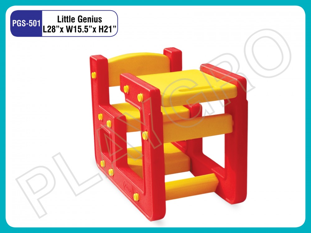 Little Genius single sitter by Playgro Toys India Pvt. Ltd. is a colorful study table designed for kids going to nursery or Preschools. Offered at affordable prices in Sirohi, these tables with storage space under the chair are perfect for kids. They will love having a place that is perfectly sized for them. Designed Child-friendly rounded edges and durable double-wall roto-plastic construction which keep your child safe & Secure. Wipes clean easily. It is made of high-quality plastic material. This Little Genius Desk is made at our unit in Sirohi using the latest technology by us our skilled professionals from premium materials.